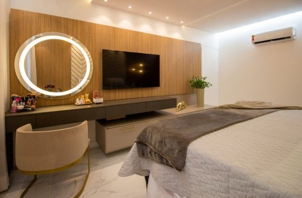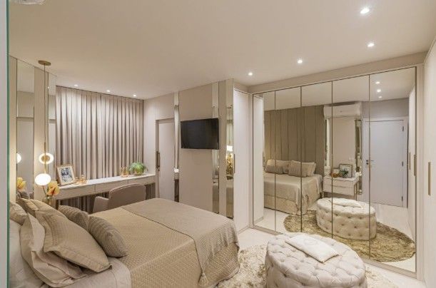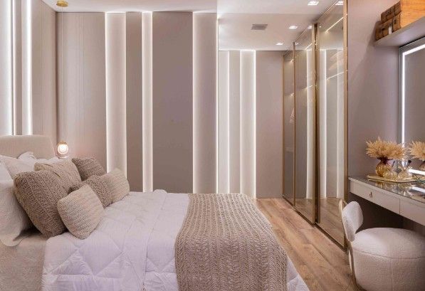 Um refúgio elegante e acolhedor. O dormitório de casal planejado com estilo clean valoriza a leveza, a organização e a sofisticação em cada detalhe. Cores suaves, móveis sob medida e um design funcional criam um ambiente tranquilo, perfeito para relaxar com conforto e charme.